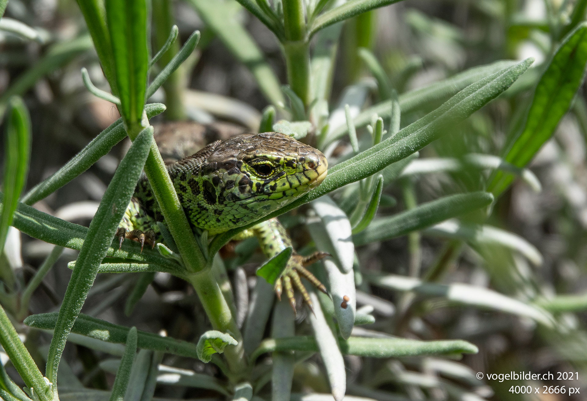 Bei mir im Schrebergarten konnte ich die letzten vier Jahre keine Zauneidechse beobachten. Dieses Jahr allerdings zeigte sich bereits 3 Mal ein Männchen, einmal hoch über Boden im Lavendel, ein anderes Mal vor vom Regen heruntergedrücktem Natterkopf.