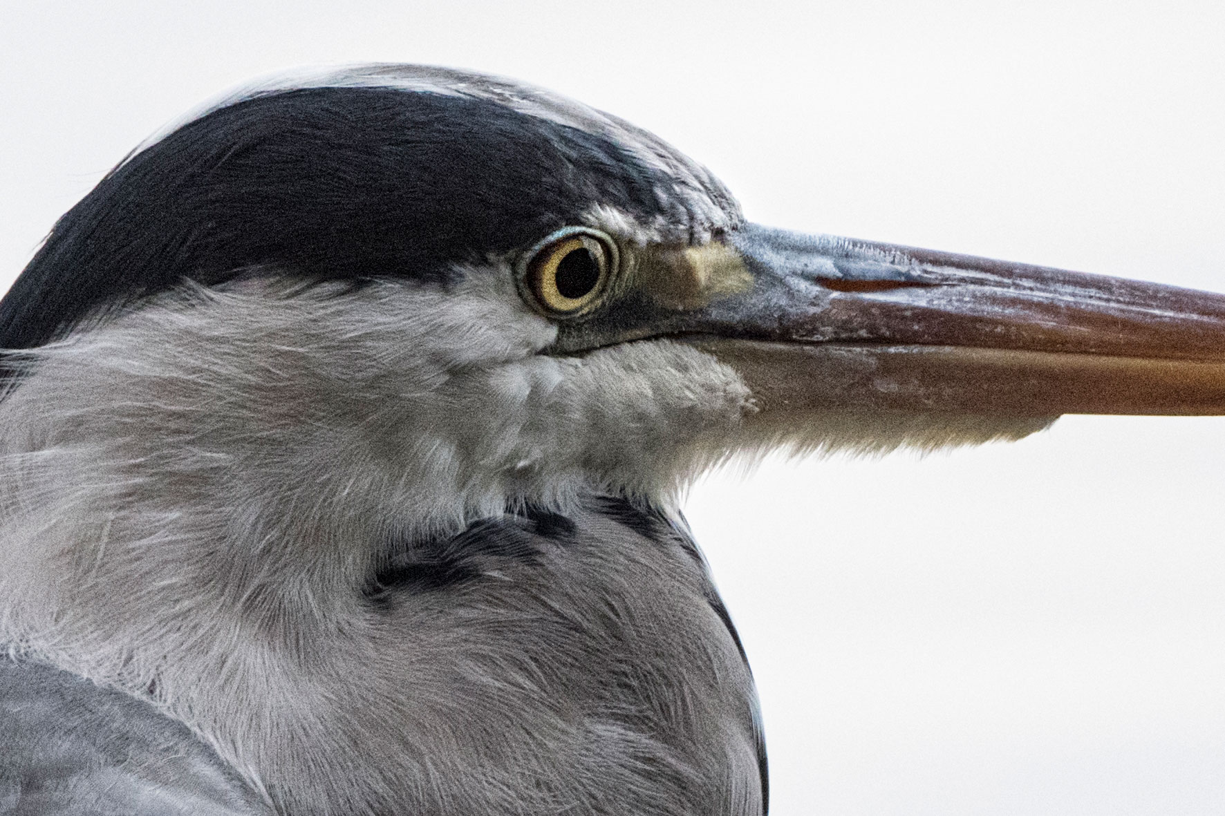 Graureiher, Ausschnitt, mit Konverter, ziemlich nah sitzend. 1:1 Ausschnitt